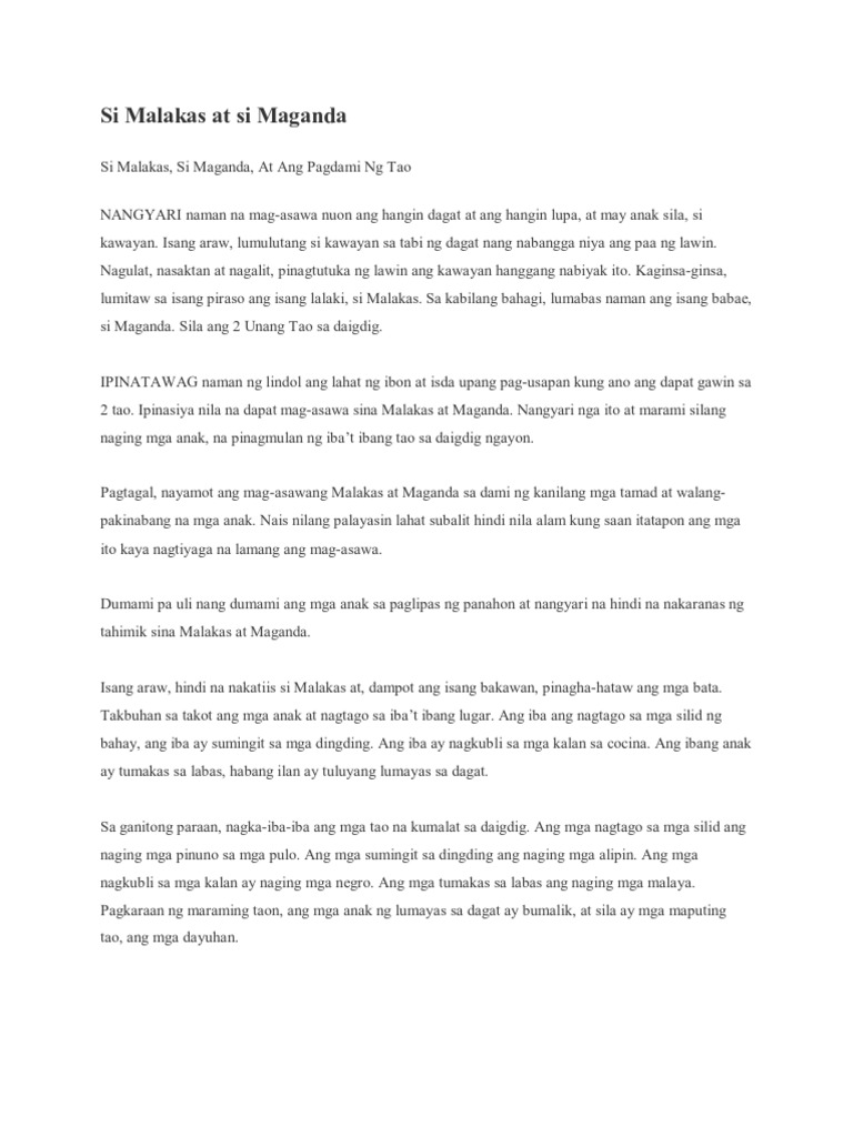 Si Malakas At Si Maganda Buod Malungkot ang Diyos noon dahil mag-isa lamang siya. Si malakas at si Maganda 1972 Plot. Smenevacuundacy and 98 more users found this answer helpful.