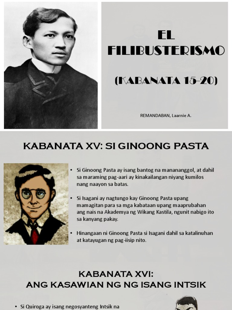Kabanata 15 EL FILIBUSTERISMO. Bilang pagtupad sa kanilang misyon tinungo ni Isagani ang tanggapan ni Ginoong Pasta. 3R ang size na gagamitin sa pagpapaprint at may caption.