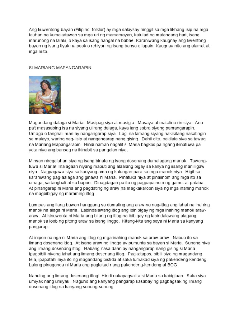 Nanduon din nuon si Mariang Makiling at nagkataon nakasabay niya si Gat Dula sa pagtawad sa isang piraso ng balat ng hayop. Kwentong-bayan Alamat at Mito on emaze. Ayusin ang mga bagay na iyong ginagawaupang sa huli ay hinda ka magsisi.